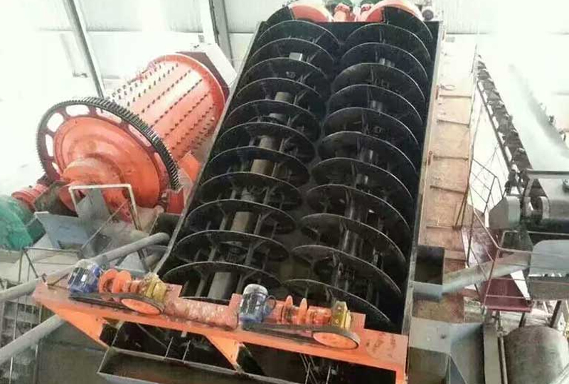 The spiral classifier relies on the principle that the solid particles are different in size and specific gravity, so their sedimentation speed is different in the liquid. The slurry is stirred by spiral rotation at low speed so that fine particles are suspended in the slurry surface and overflow to the overflow weir. Coarse particles sink to the bottom of the tank and are conveyed by the screw to the discharge port to be discharged. Generally, the coarse sand is returned to the ball mill for secondary grinding, that is, the spiral classifier and the ball mill form a closed circuit.