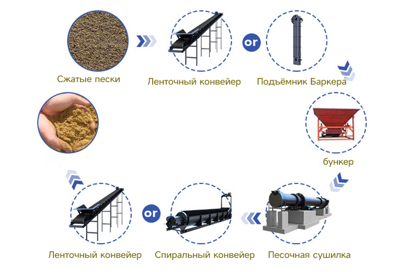 Песок отправляется в бункер ленточным конвейером или ковшовым элеватором, а затем поступает в загрузочный конец через загрузочную трубу через загрузочную машину бункера.
