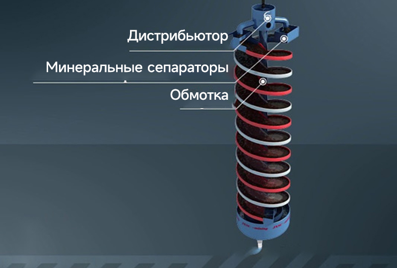 Спиральный концентратор занимает мало места, влагонепроницаем, устойчив к ржавчине, коррозии и не производит шума.